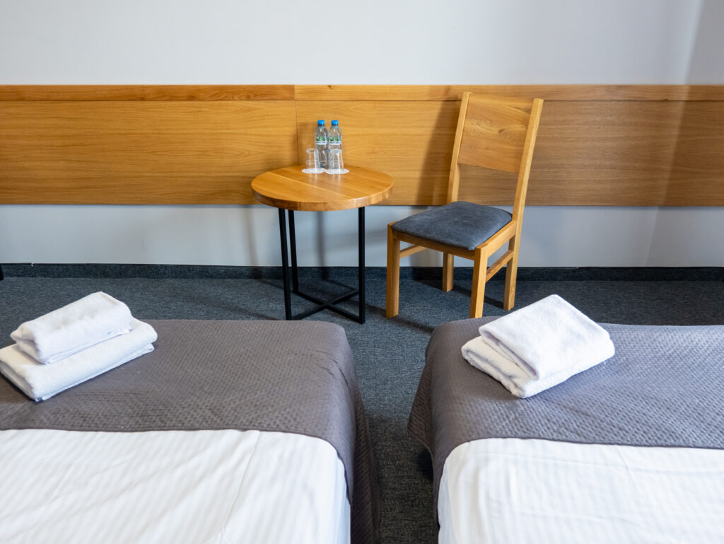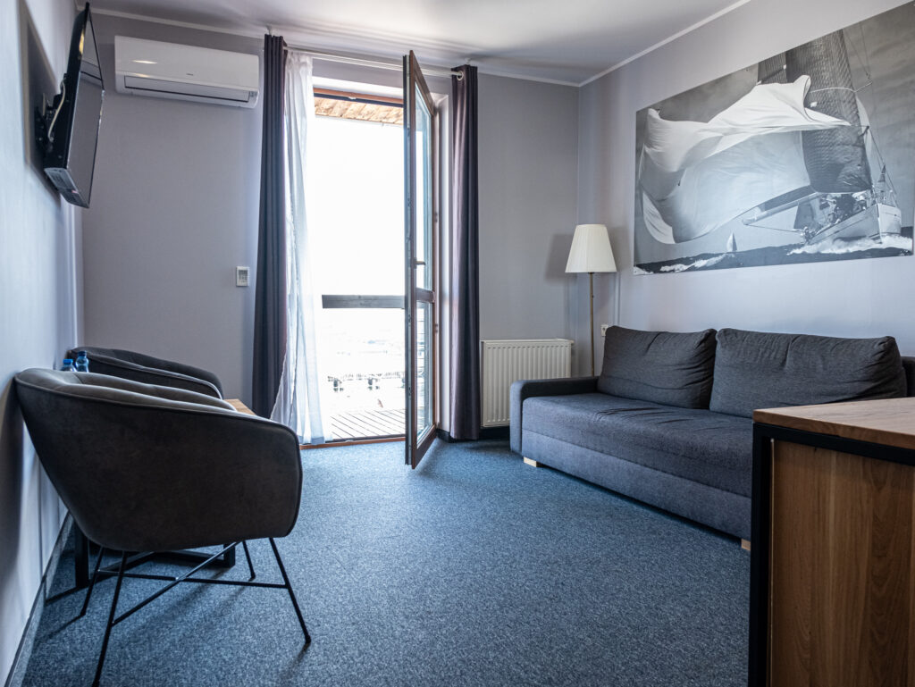W Hotelu Galion*** do dyspozycji Gości oddajemy 47 komfortowych pokoi jedno- i dwuosobowych z łazienkami. Przestronne wnętrza zlokalizowane są na dwóch piętrach budynku. Pokoje na pierwszym piętrze oferują obszerne balkony, z których rozpościerają się malownicze widoki– jedne wychodzą na marinę żeglarską, pozostałe na otoczoną lasem infrastrukturę sportową. Dodatkowo w hotelu znajdują się 3 pokoje typu studio. Przestronne, klimatyzowane, z osobną toaletą i łazienką – idealne dla rodzin z dziećmi czy grup przyjaciół. Na pierwszym piętrze umieszczono również dwa przestronne pokoje przystosowane dla osób ze szczególnymi potrzebami. Każdy z nich posiada możliwość pełnowymiarowej dostawki dla opiekuna.